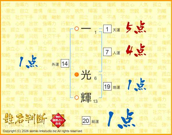 一光輝さんの総運は20画の1点!