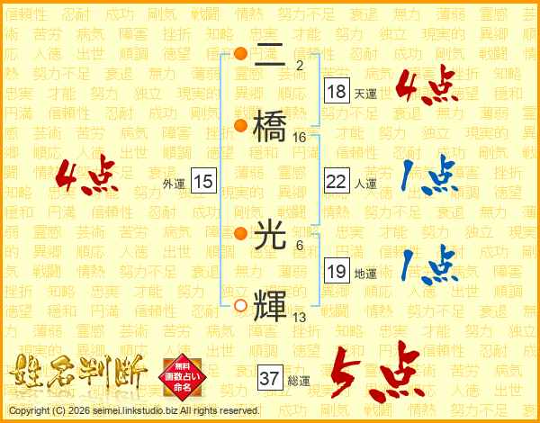 二橋光輝さんの総運は37画の5点!