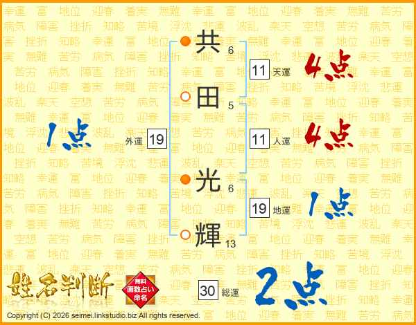 共田光輝さんの人運は11画の4点!