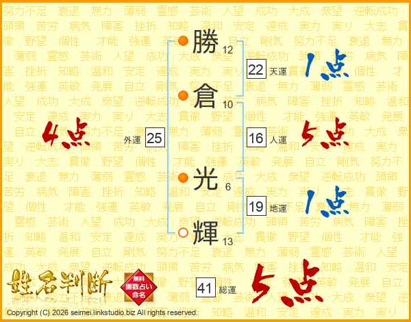 勝(12画)倉(10画) 光(6画)輝(13画)