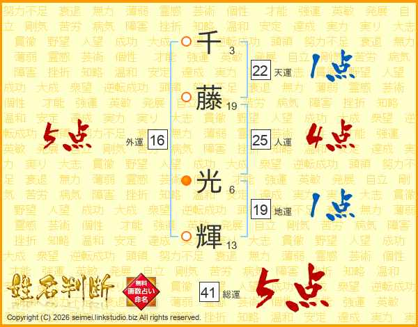 千藤光輝さんの総運は41画の5点!