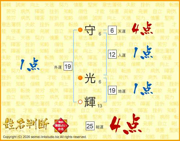 守光輝さんの総運は25画の4点!