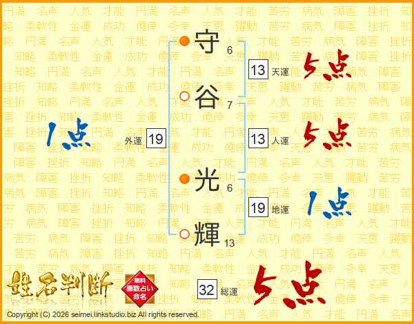 守谷光輝さんの総運は32画の5点!
