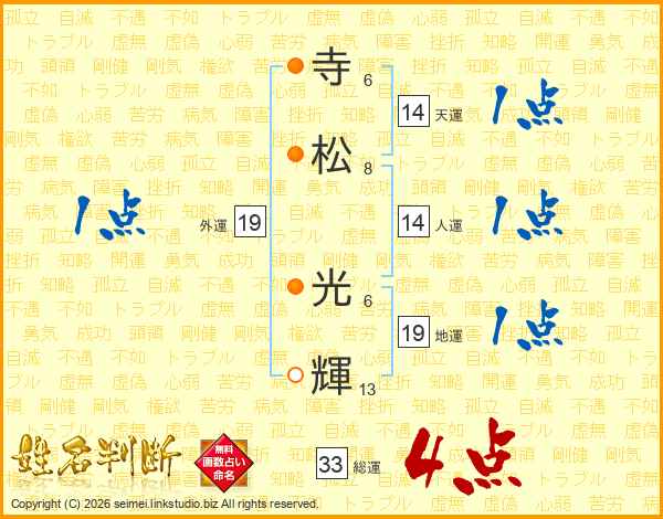寺(6画)松(8画) 光(6画)輝(13画)