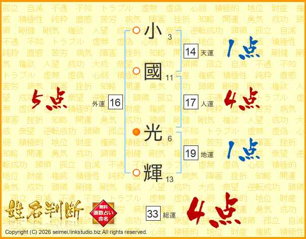 小國光輝さんの総運は33画の4点!
