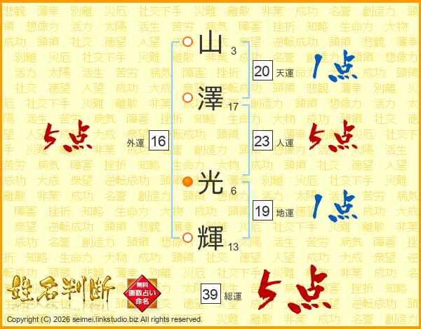山澤光輝さんの総運は39画の5点!