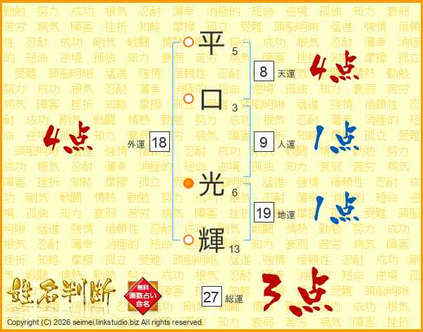 平口光輝さんの総運は27画の3点!