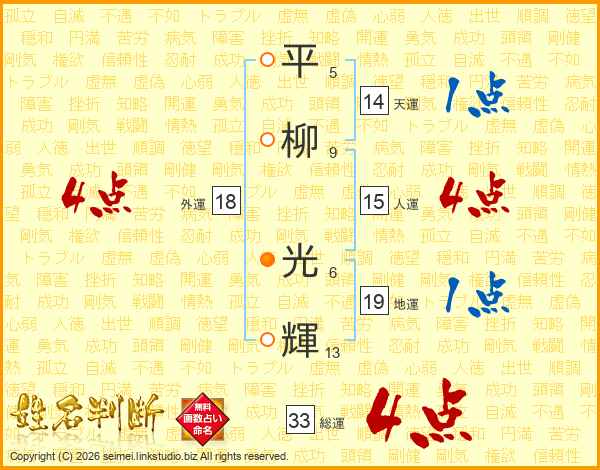 平柳光輝さんの総運は33画の4点!