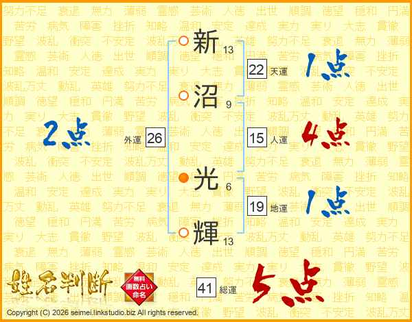 新沼光輝さんの総運は41画の5点!