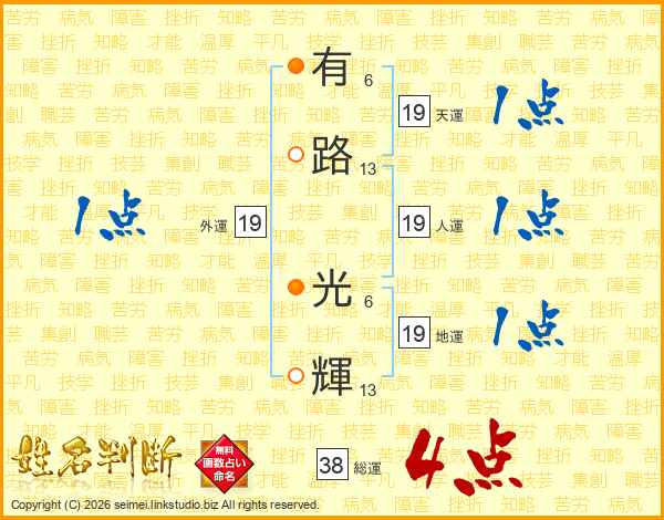 有路光輝さんの総運は38画の4点!