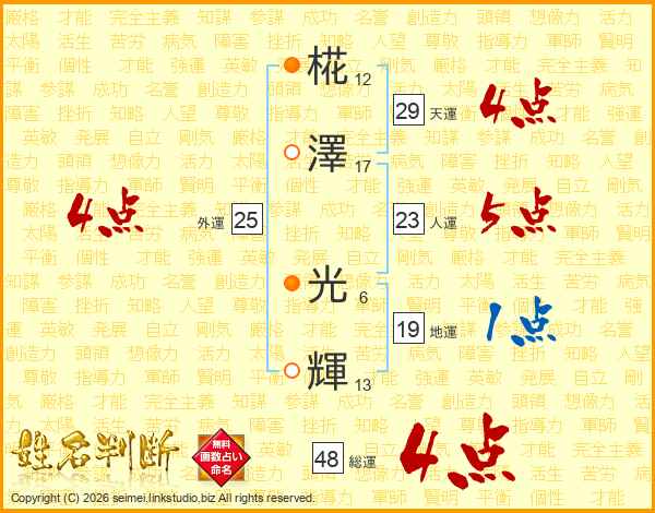 椛澤光輝さんの総運は48画の4点!