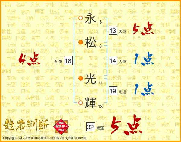 永(5画)松(8画) 光(6画)輝(13画)