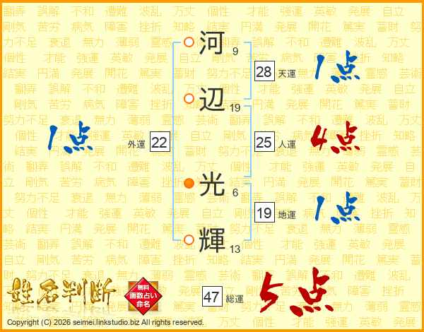 河辺光輝さんの総運は47画の5点!