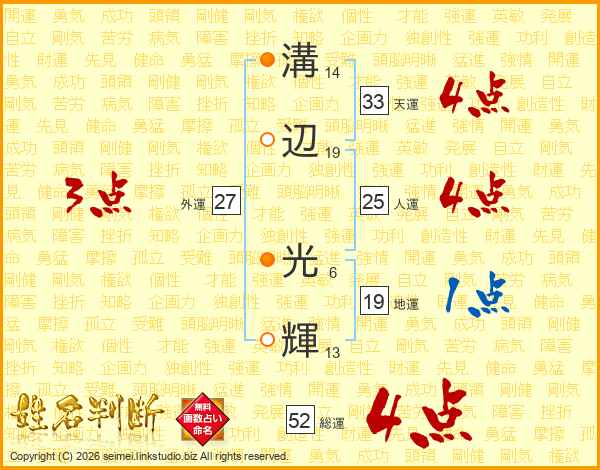 溝辺光輝さんの総運は52画の4点!