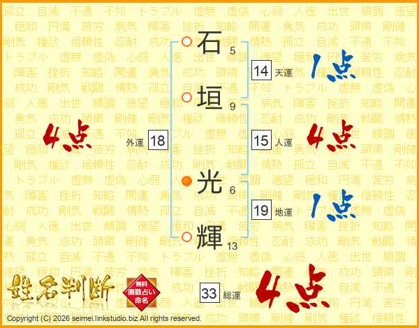 石垣光輝さんの総運は33画の4点!