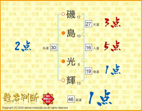 磯(17画)島(10画) 光(6画)輝(13画)