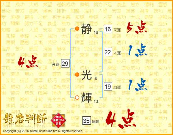 静光輝さんの総運は35画の4点!