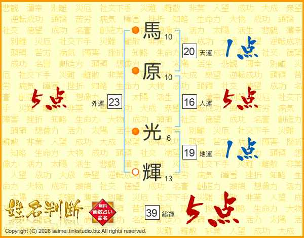 馬原光輝さんの総運は39画の5点!