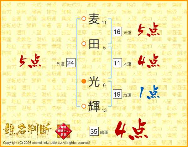 麦田光輝さんの総運は35画の4点!