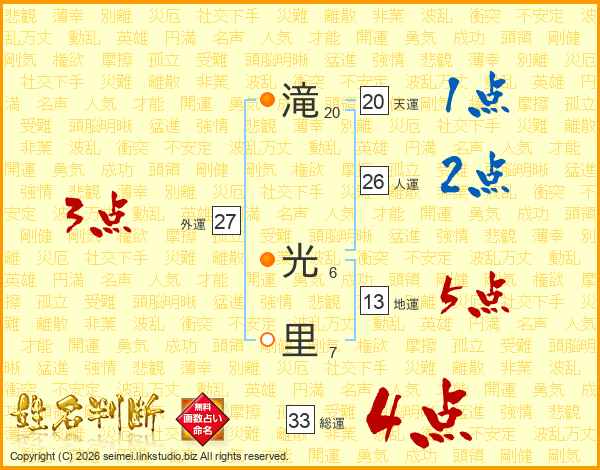 滝光里さんの総運は33画の4点!