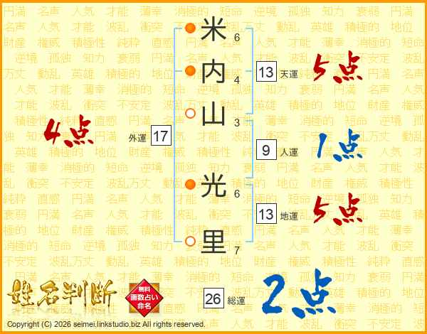 米(6画)内(4画)山(3画) 光(6画)里(7画)