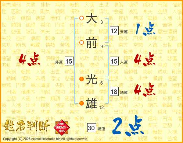 大前光雄さんの総運は30画の2点!