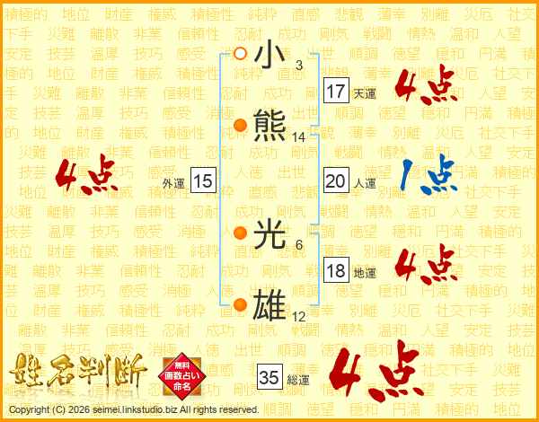 小熊光雄さんの総運は35画の4点!