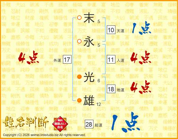 末(5画)永(5画) 光(6画)雄(12画)