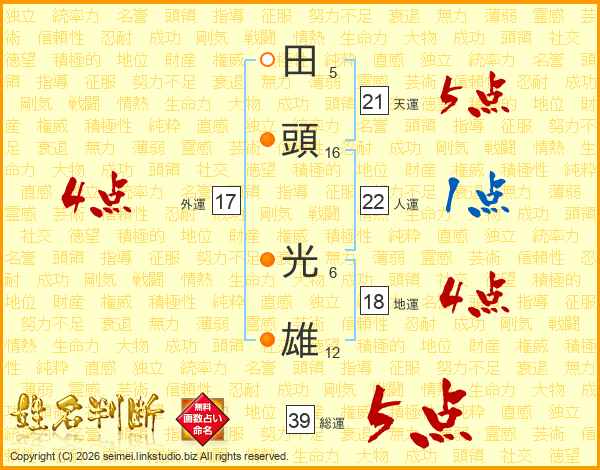田頭光雄さんの天運は21画の5点!