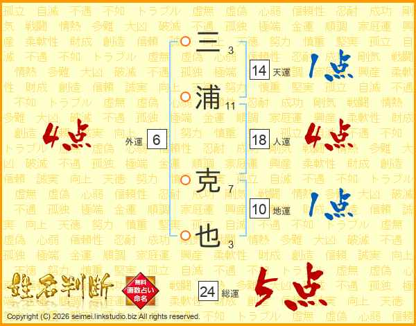 三浦克也さんの総運は24画の5点!