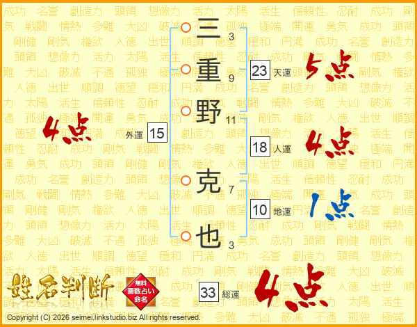 三重野克也さんの総運は33画の4点!