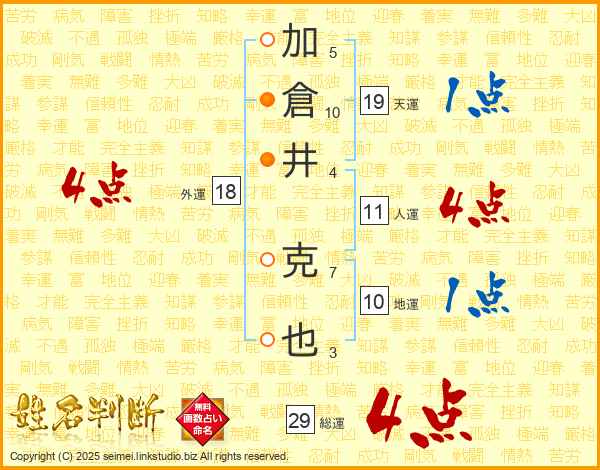 加倉井克也さんの総運は29画の4点!