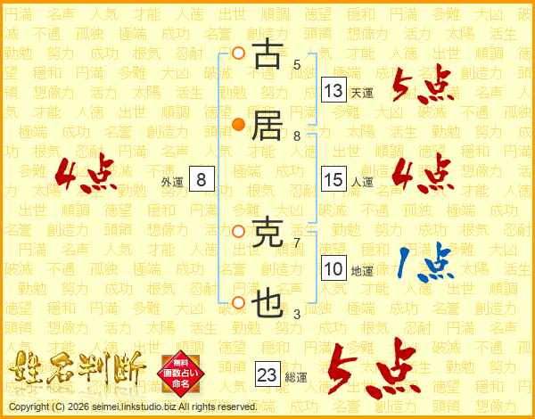 古居克也さんの総運は23画の5点!