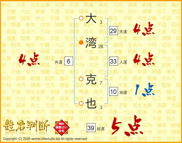 大湾克也さんの総運は39画の5点!