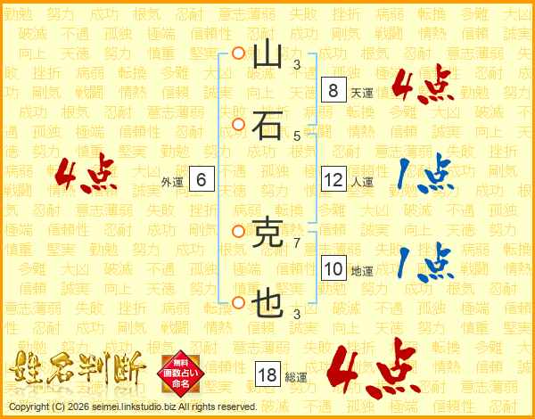 山石克也さんの総運は18画の4点!