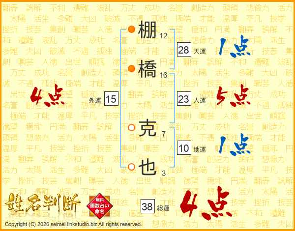 棚橋克也さんの総運は38画の4点!