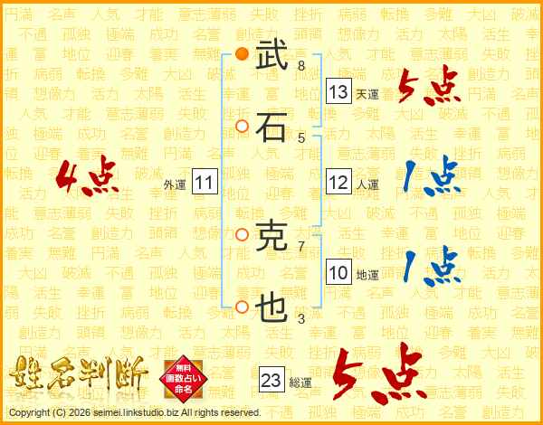 武石克也さんの総運は23画の5点!