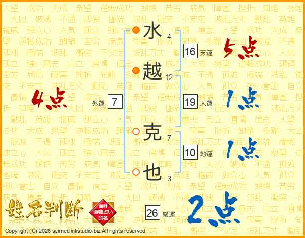 水越克也さんの総運は26画の2点!