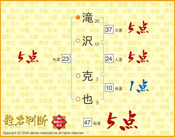 滝沢克也さんの総運は47画の5点!