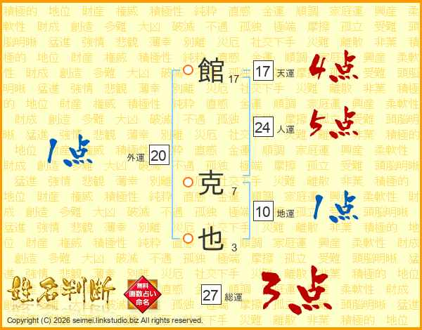 館克也さんの総運は27画の3点!