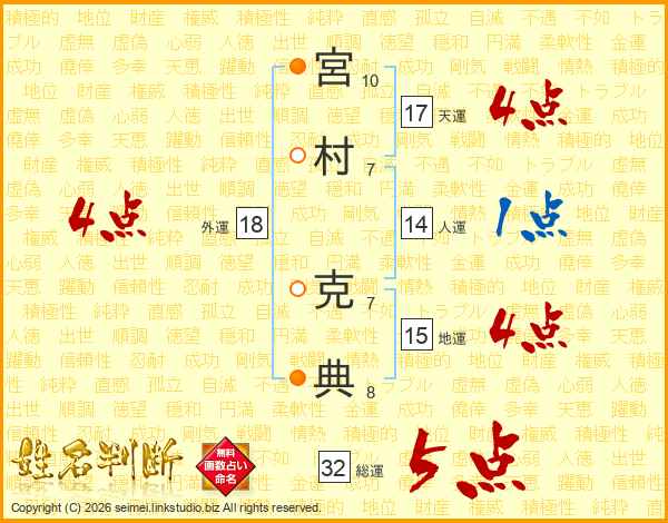 宮村克典さんの総運は32画の5点!