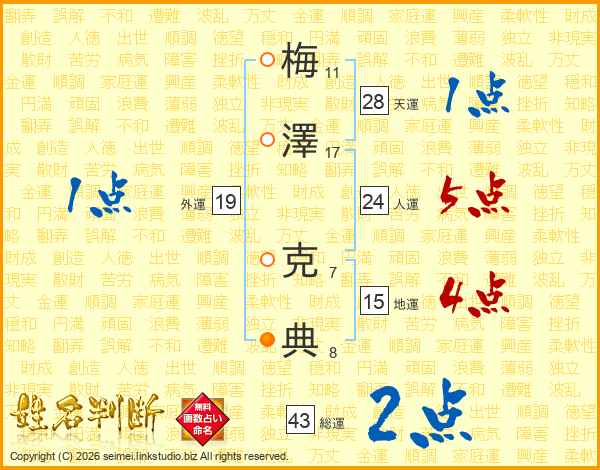 梅澤克典さんの総運は43画の2点!