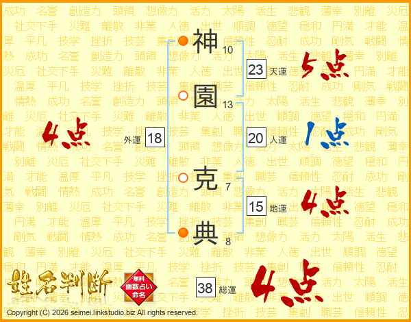 神園克典さんの総運は38画の4点!