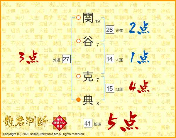 関谷克典さんの総運は41画の5点!