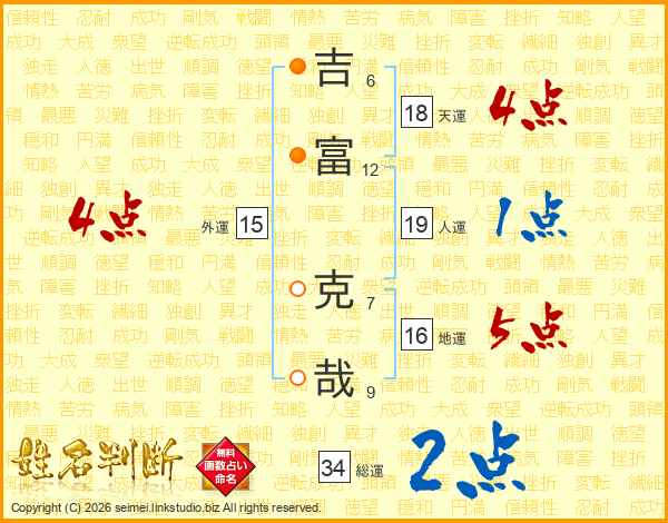 吉富克哉さんの総運は34画の2点!