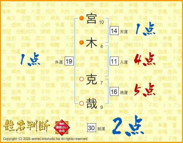 宮木克哉さんの総運は30画の2点!