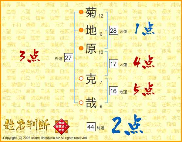 菊地原克哉さんの総運は44画の2点!
