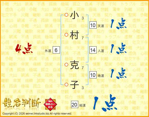 小村克子さんの総運は20画の1点!