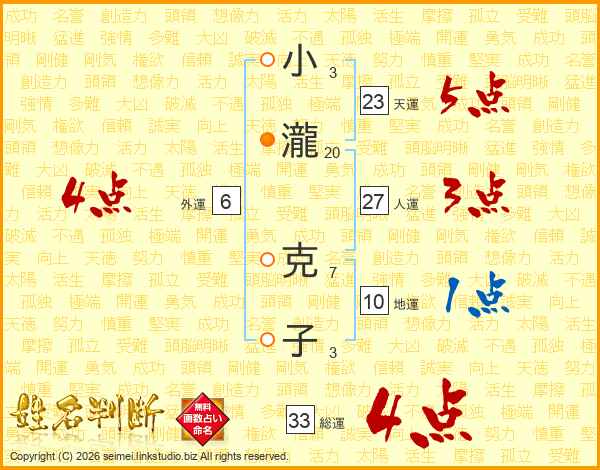 小瀧克子さんの総運は33画の4点!