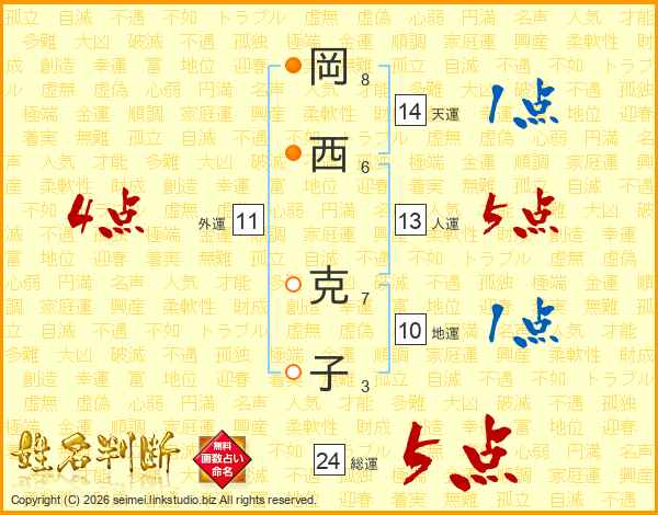 岡西克子さんの総運は24画の5点!